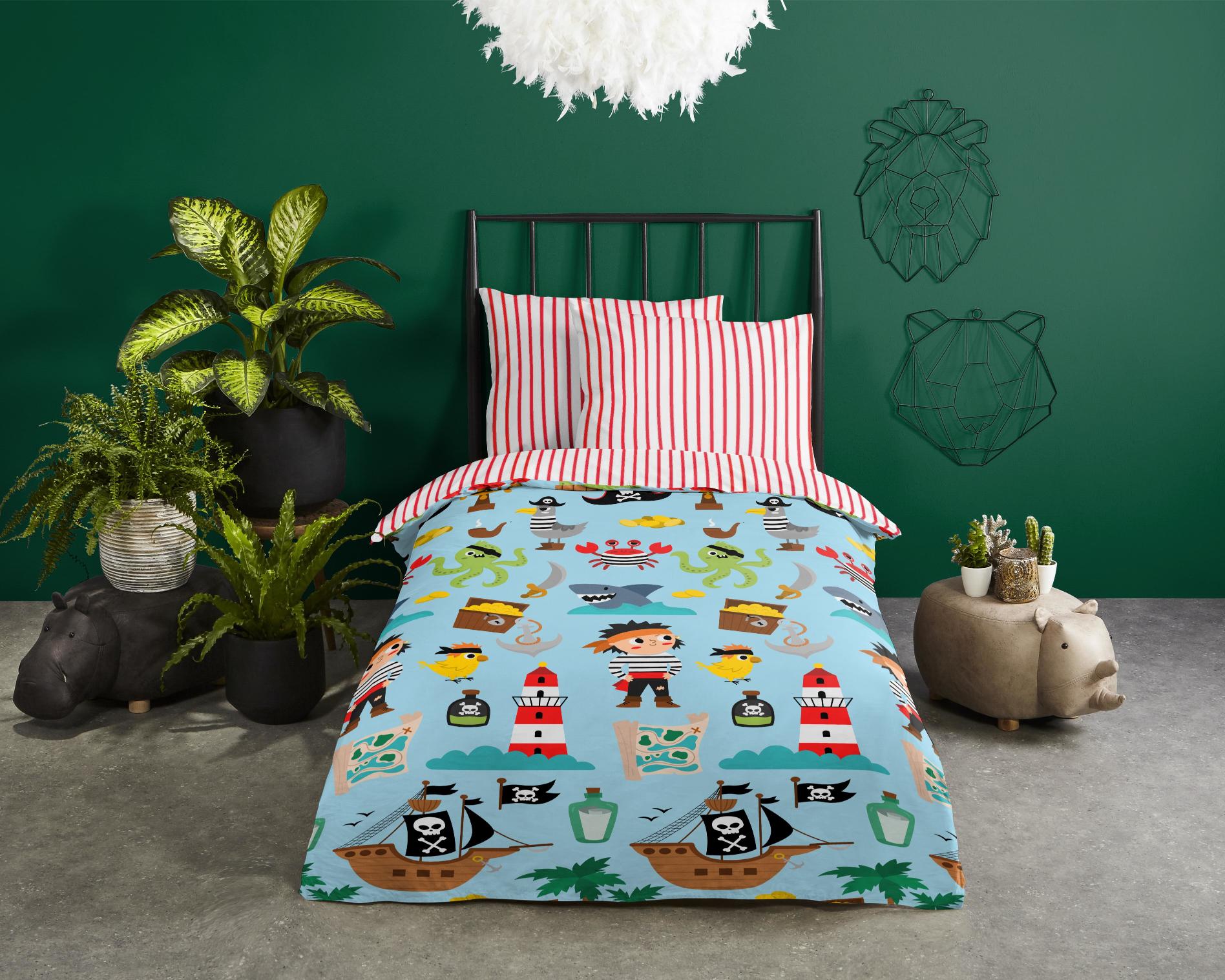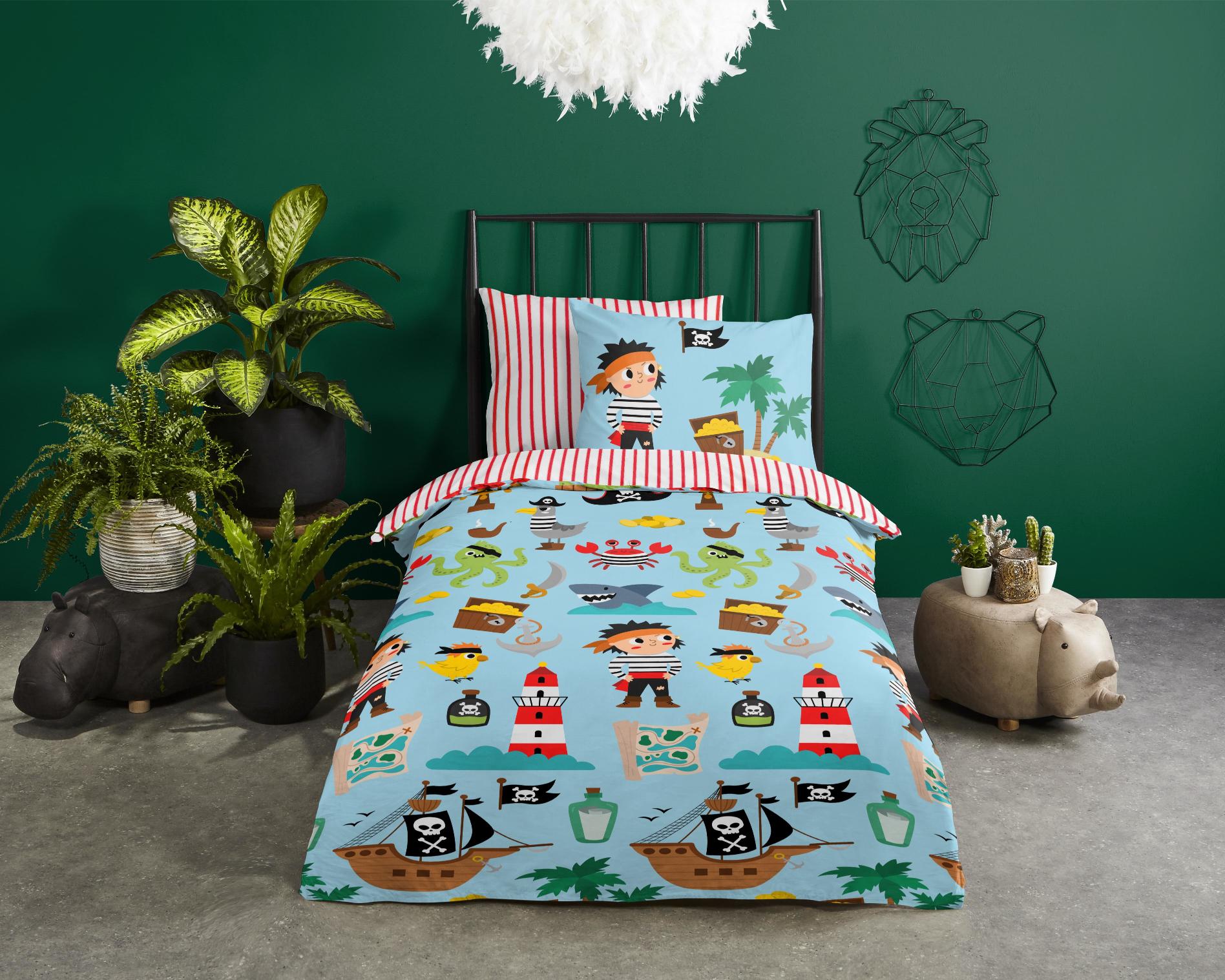 Housse de couette pour enfants Caribbean de Good Morning en couleur multi, avec un imprimé de pirates/thème marin. La housse de couette est faite de 100% coton. Cette qualité est respirante, absorbante et se sent douce et souple. Cette jolie housse de couette pour enfants est un ajout amusant à toute chambre d'enfant. La housse de couette pour enfants est adaptée à toutes les saisons. Le coton 100% est agréablement frais en été et procure de la chaleur en hiver.