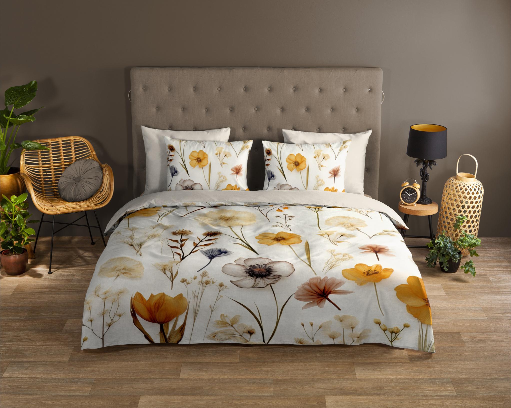 Housse de couette Lara de Good Morning avec des fleurs apaisantes, en couleur multi. Elle est fabriquée en 100% coton. La qualité est respirante, absorbante et se sent douce et souple. Cette belle housse de couette égaye chaque chambre et convient à toutes les saisons. La housse de couette en coton est agréablement fraîche en été et procure de la chaleur en hiver. L'ensemble se compose d'une housse de couette incluant une taie d'oreiller avec fermeture hôtelière. La housse de couette est dotée d'une double bande de boutonnage continue. Cet article est certifié Oeko-Tex (Oeko-Tex Standard 100) : exempt de substances nocives et respectueux de la peau. Lavable à max. 40°C et adapté au sèche-linge.