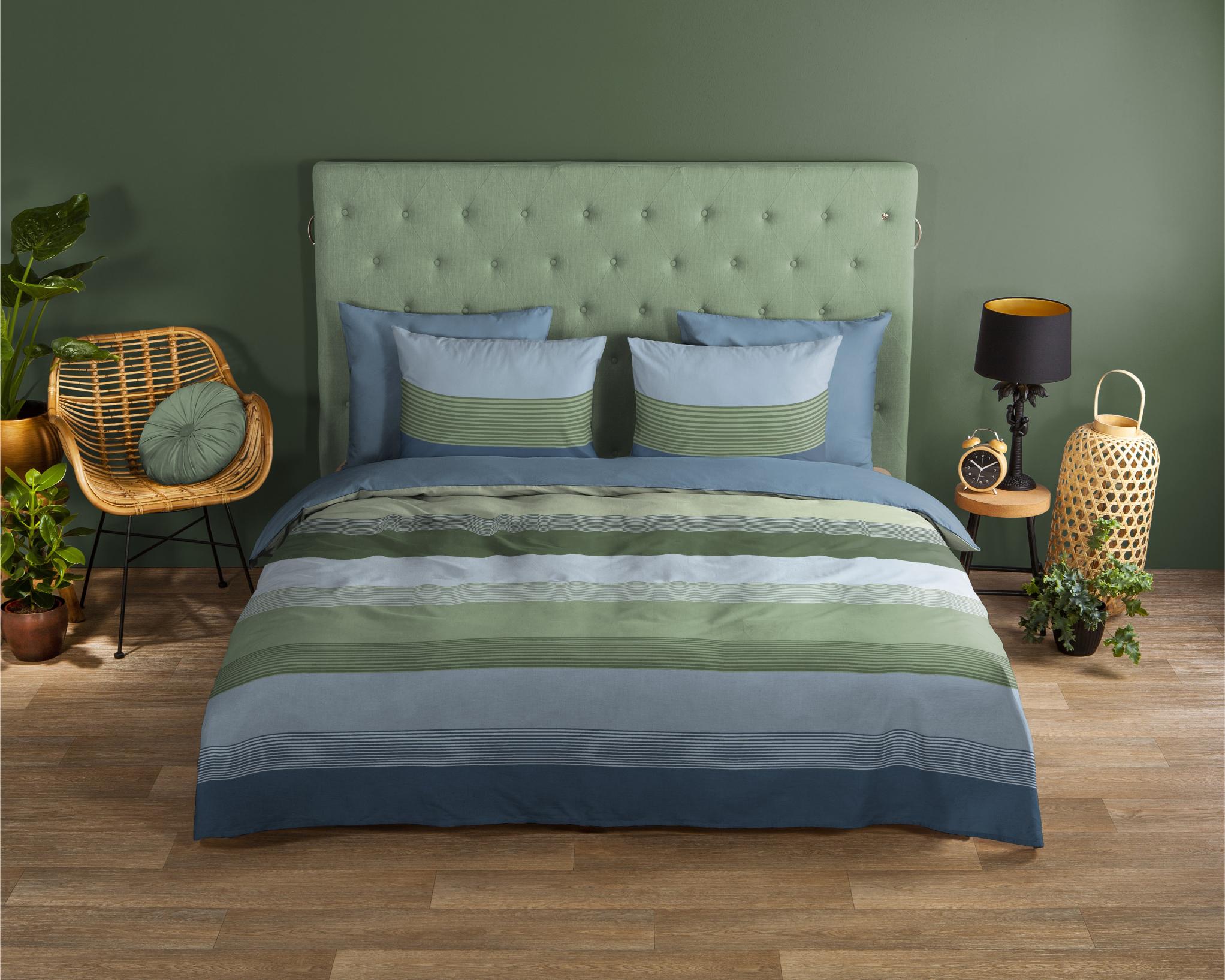 L'ensemble se compose d'une housse de couette avec une taie d'oreiller à fermeture hôtelière. La housse de couette est dotée d'une bande d'arrêt double continue. Cet article est certifié Oeko-Tex (Oeko-Tex Standard 100) : exempt de substances nocives et respectueux de la peau. Lavable à max. 40°C et adapté au sèche-linge.