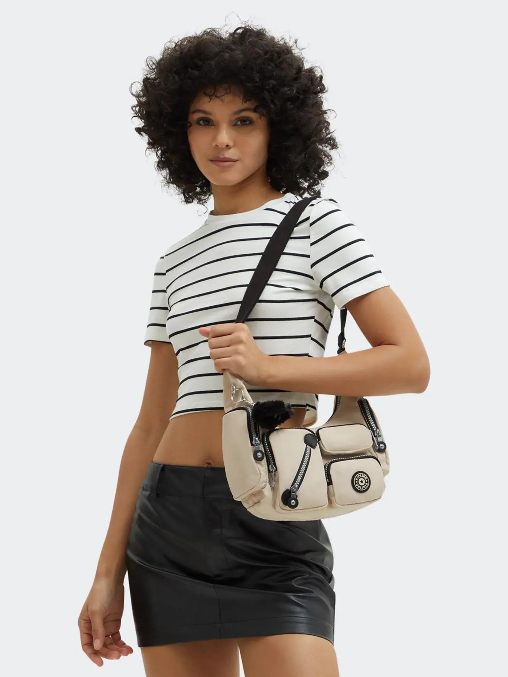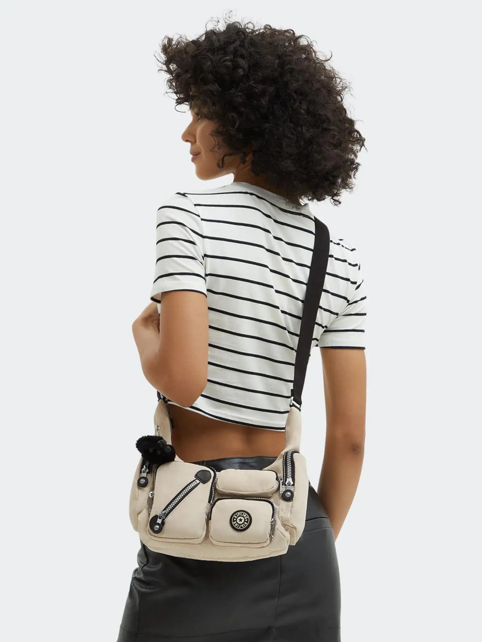 Le petit sac à bandoulière Etsu occupera une place de choix dans votre collection de sacs. Avec une poche intérieure zippée, deux poches latérales zippées et quatre poches avant zippées qui ajoutent une touche stylée, le sac Etsu est aussi pratique qu'attrayant. Il est également doté d'une bandoulière réglable pour garantir un confort optimal.