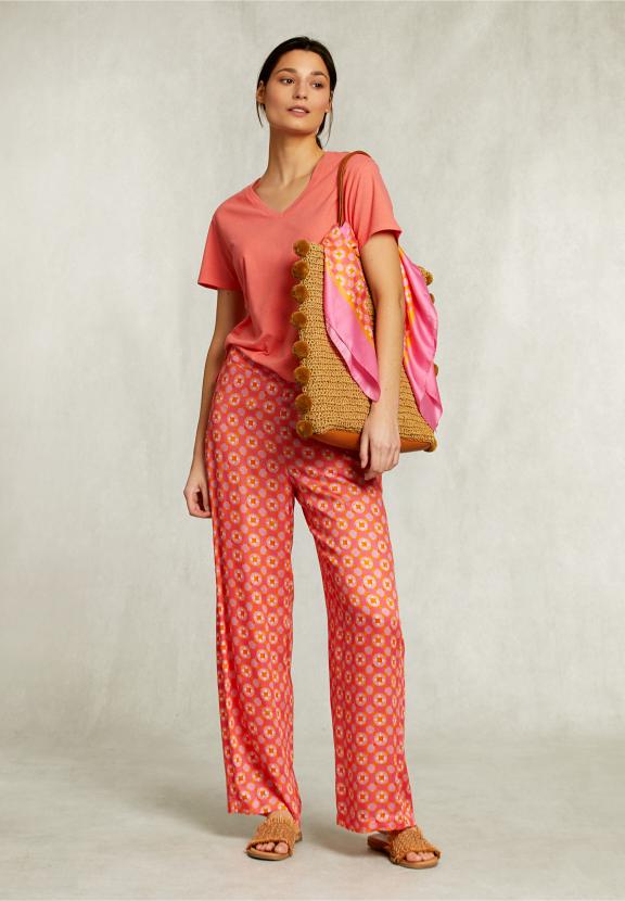 Red Basic V-Neck T-Shirt - Orange