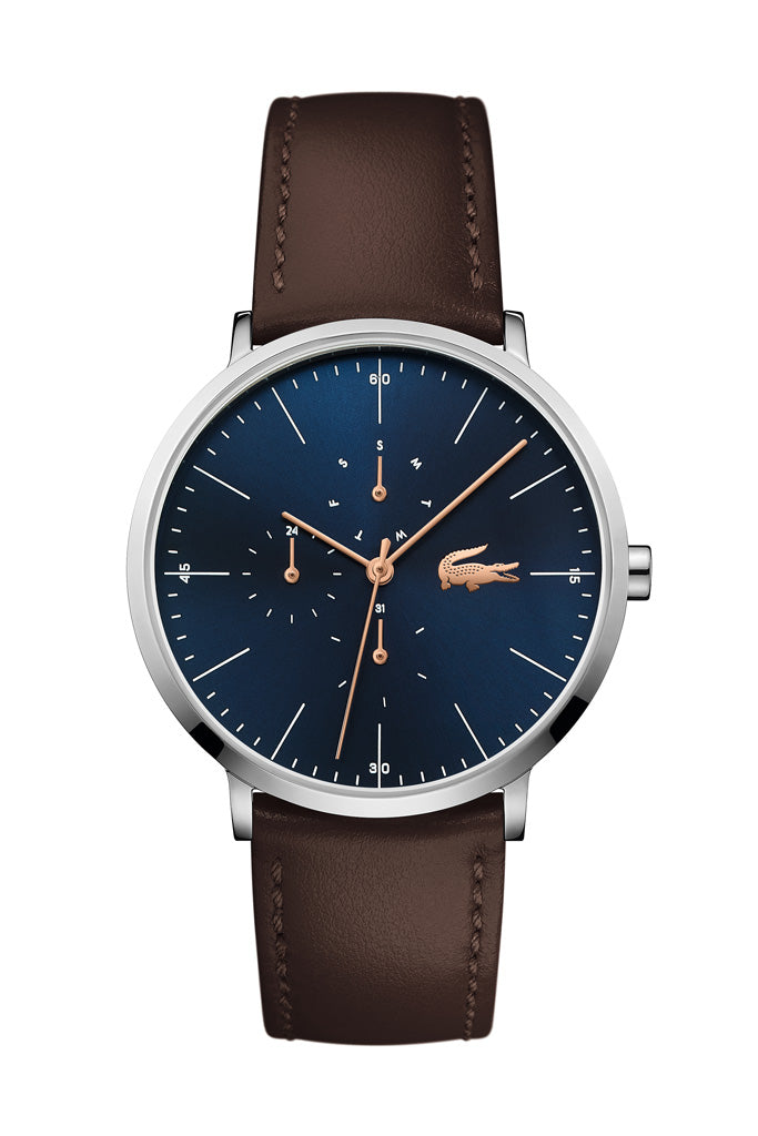 Bruine multi-lederen stalen kast-blauwe wijzerplaat-3ATM-40mm