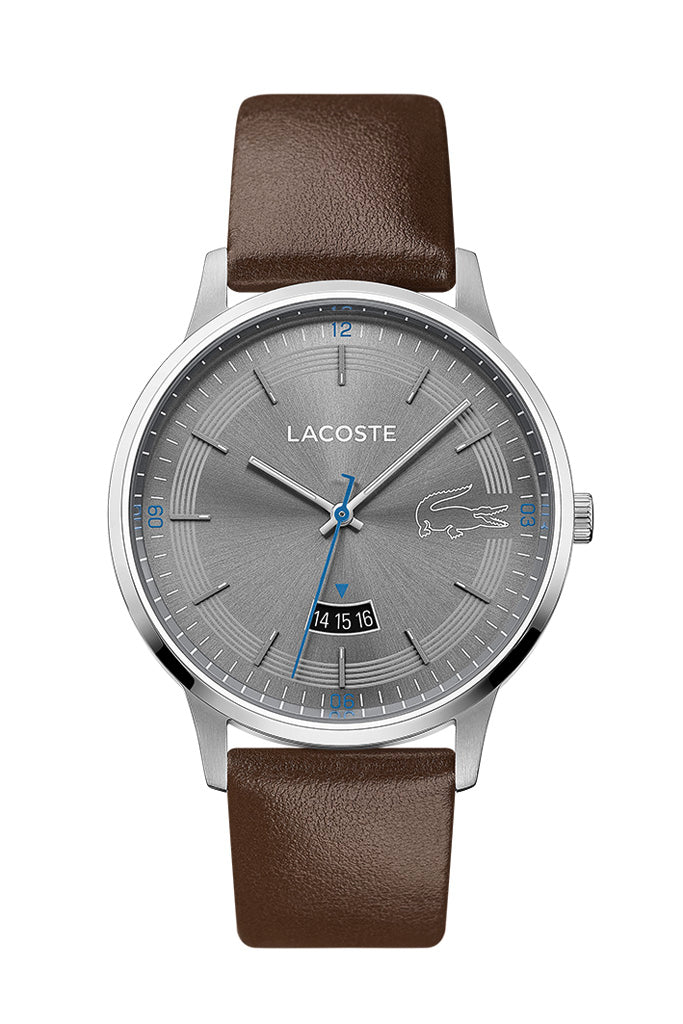 bruine leren band - stalen kast - grijze wijzerplaat - datum - 41 mm - 5 ATM