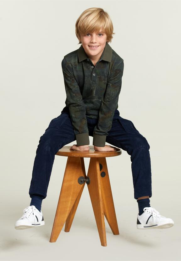 Floral Polo Long Sleeves Khaki - Vert