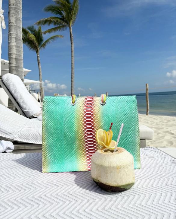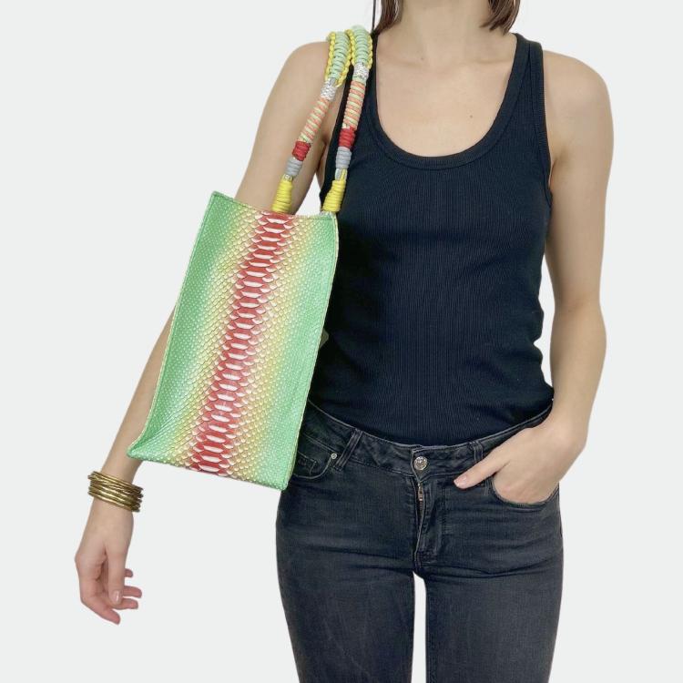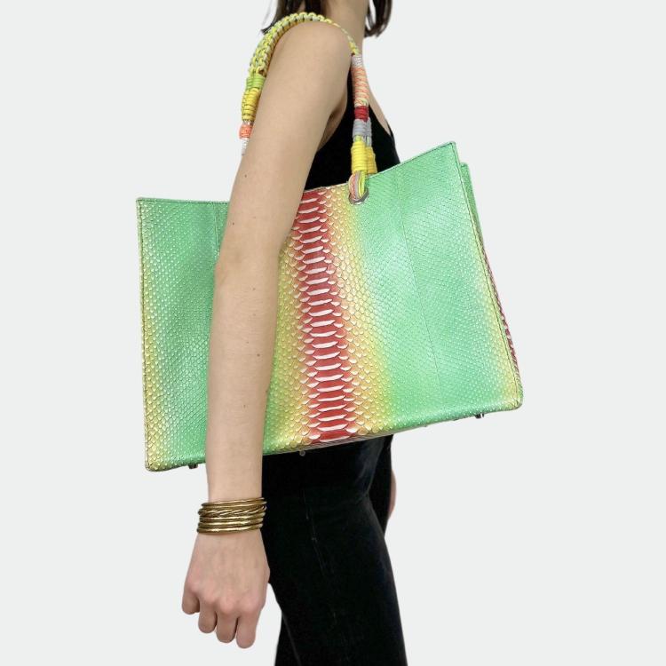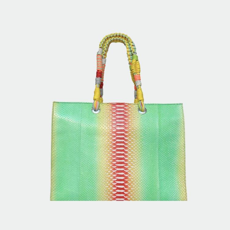 Sac en python, avec doublure intérieure en coton et anses tressées.