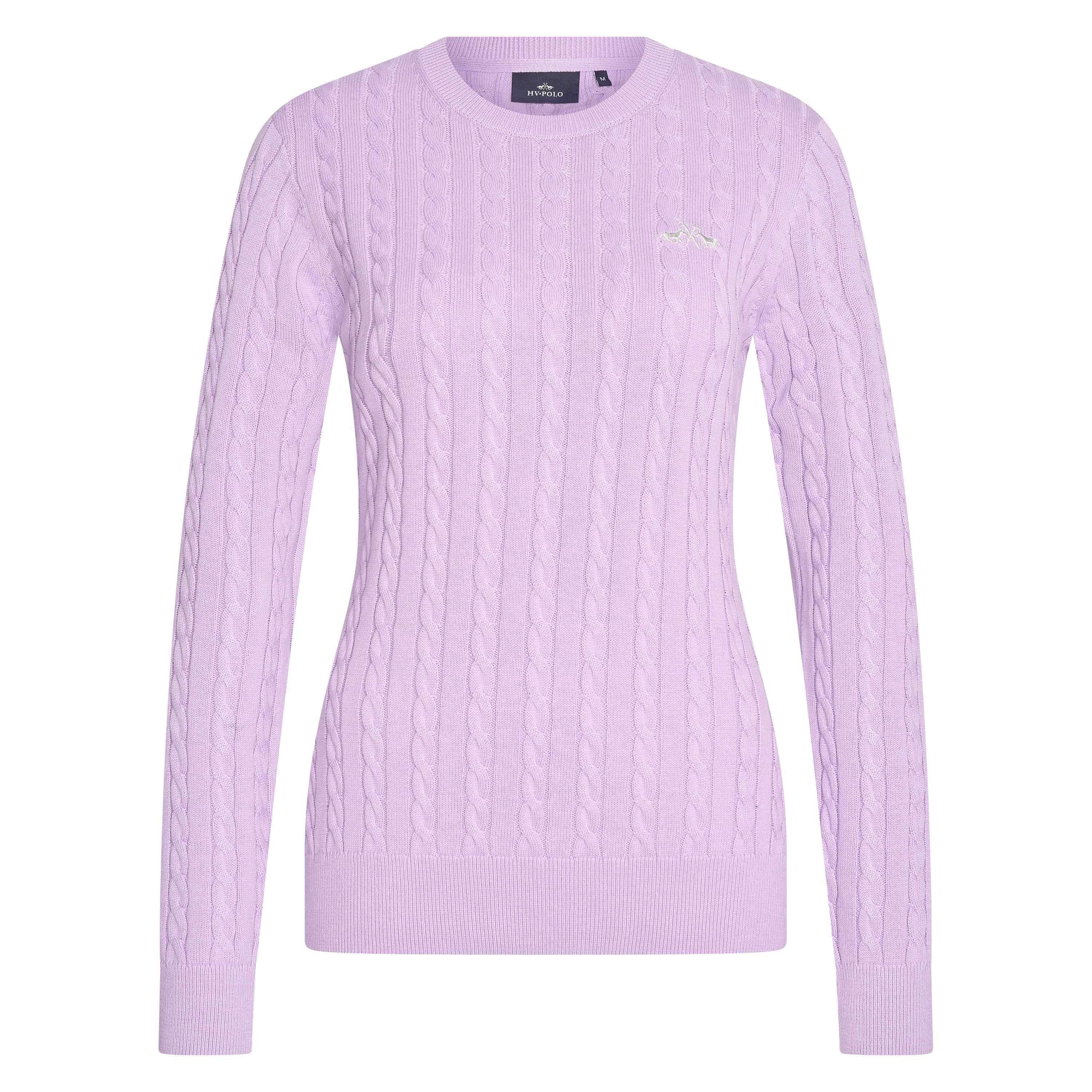 Zachte luxe katoengaren * Volledig gevormd * Kabelpatroon op lichaam en mouwen * Geribbelde ronde hals, manchetten en zoom * Paardlogo borduursel op de borst