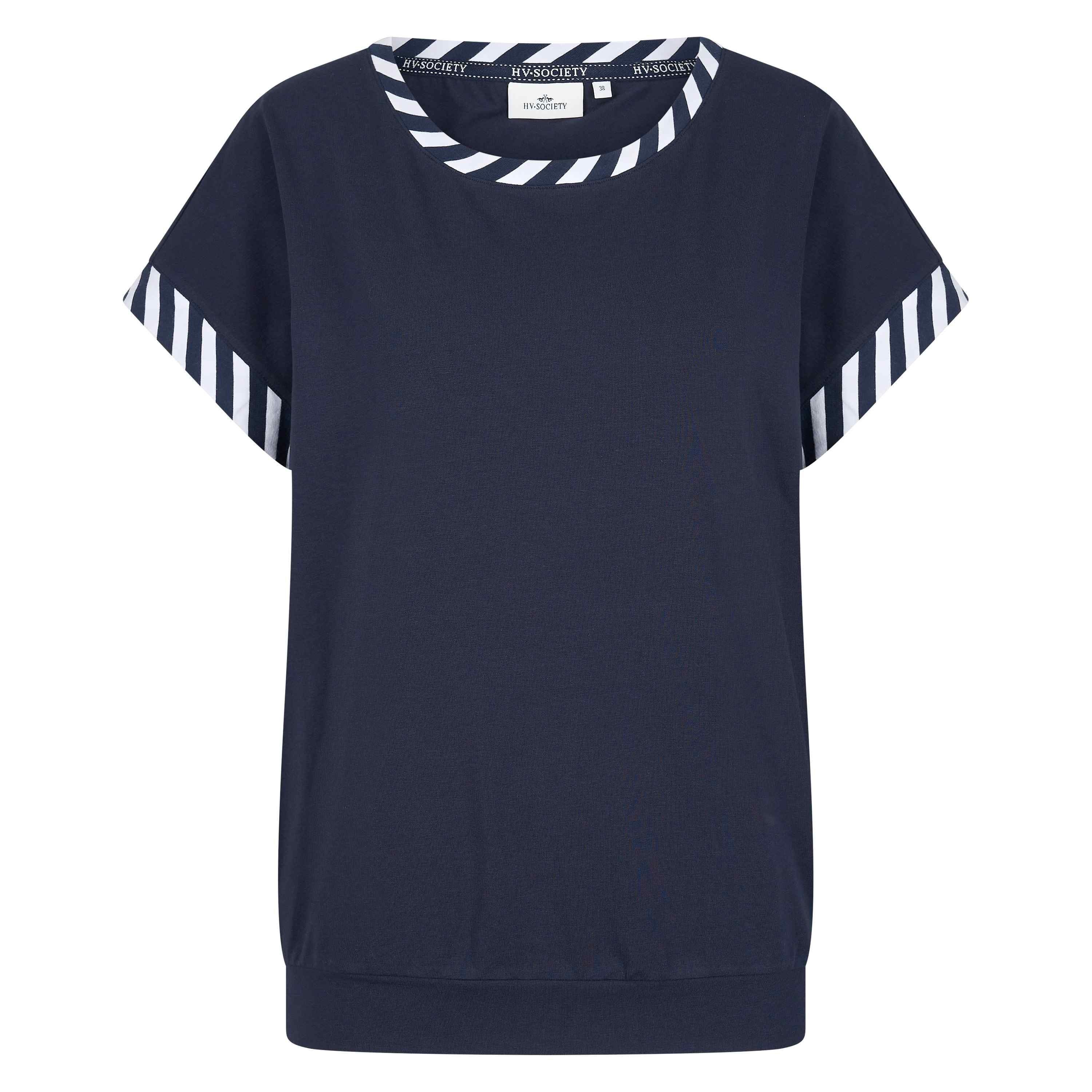 Top met korte aangeknipte mouwen * Stretch katoenen jersey * In effen stof of garengeverfde streep * Diagonaal gestreepte stof bij de halslijn en manchetten * Metalen logoplaat aan de voorkant