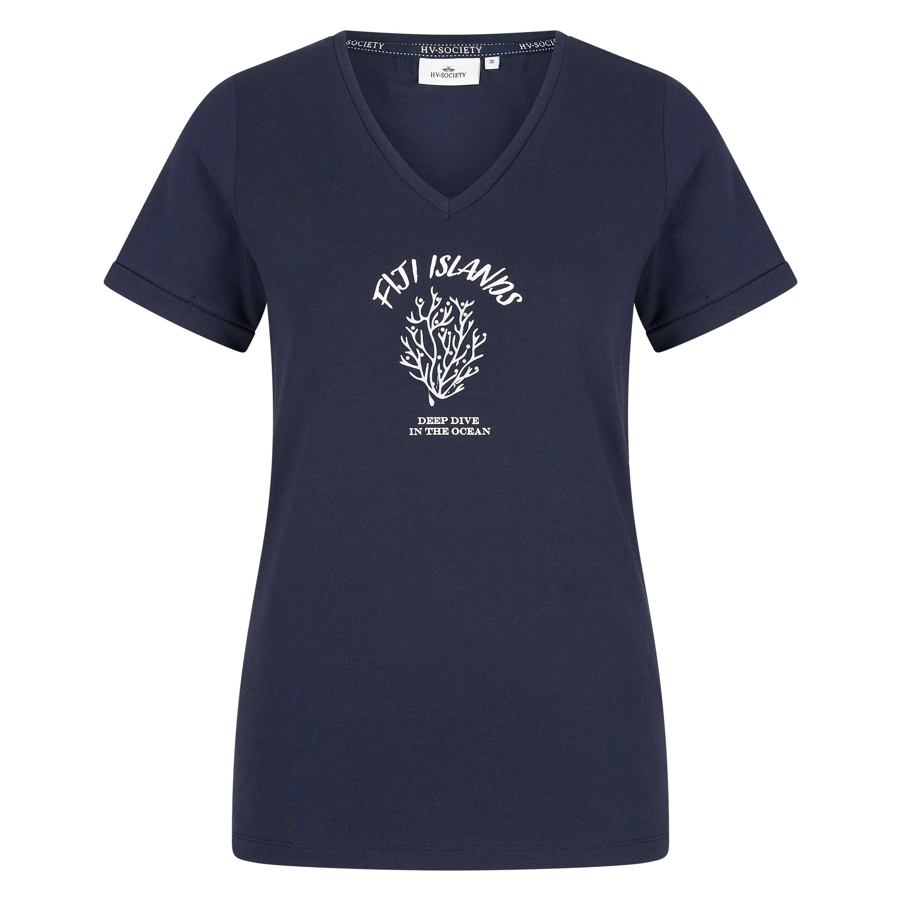 Regular fit top in stretch katoen jersey * Korte mouw met omgeslagen mouwuiteinde * V-hals * Artwork op de borst * Metalen logoplaat aan de voorkant