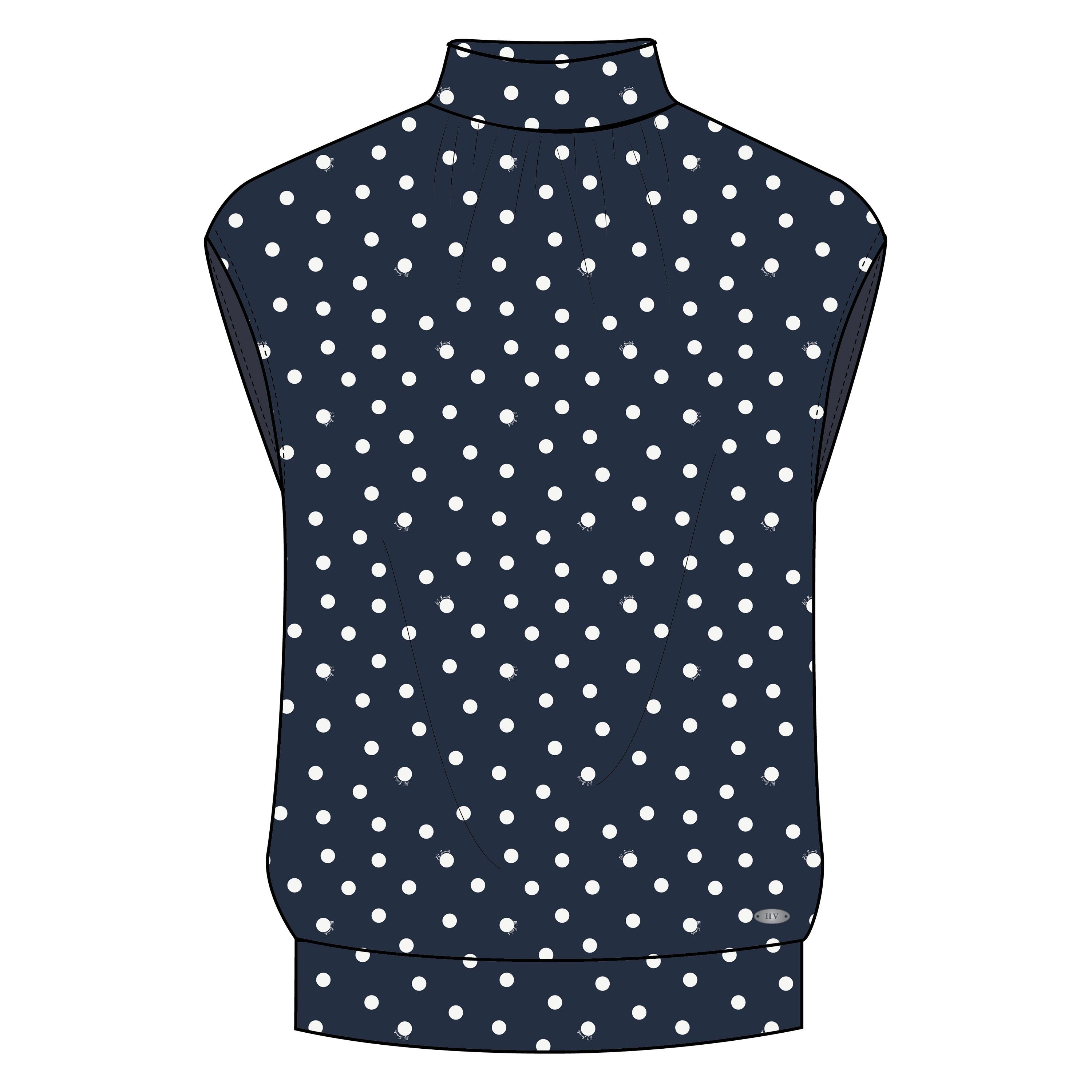 Elegante mouwloze top in een all-over gedrukte stip * Stretch viscose jersey * Knoopsluiting aan de achterkant van de hals met elegante parelknopen * Metalen logoplaat aan de voorkant