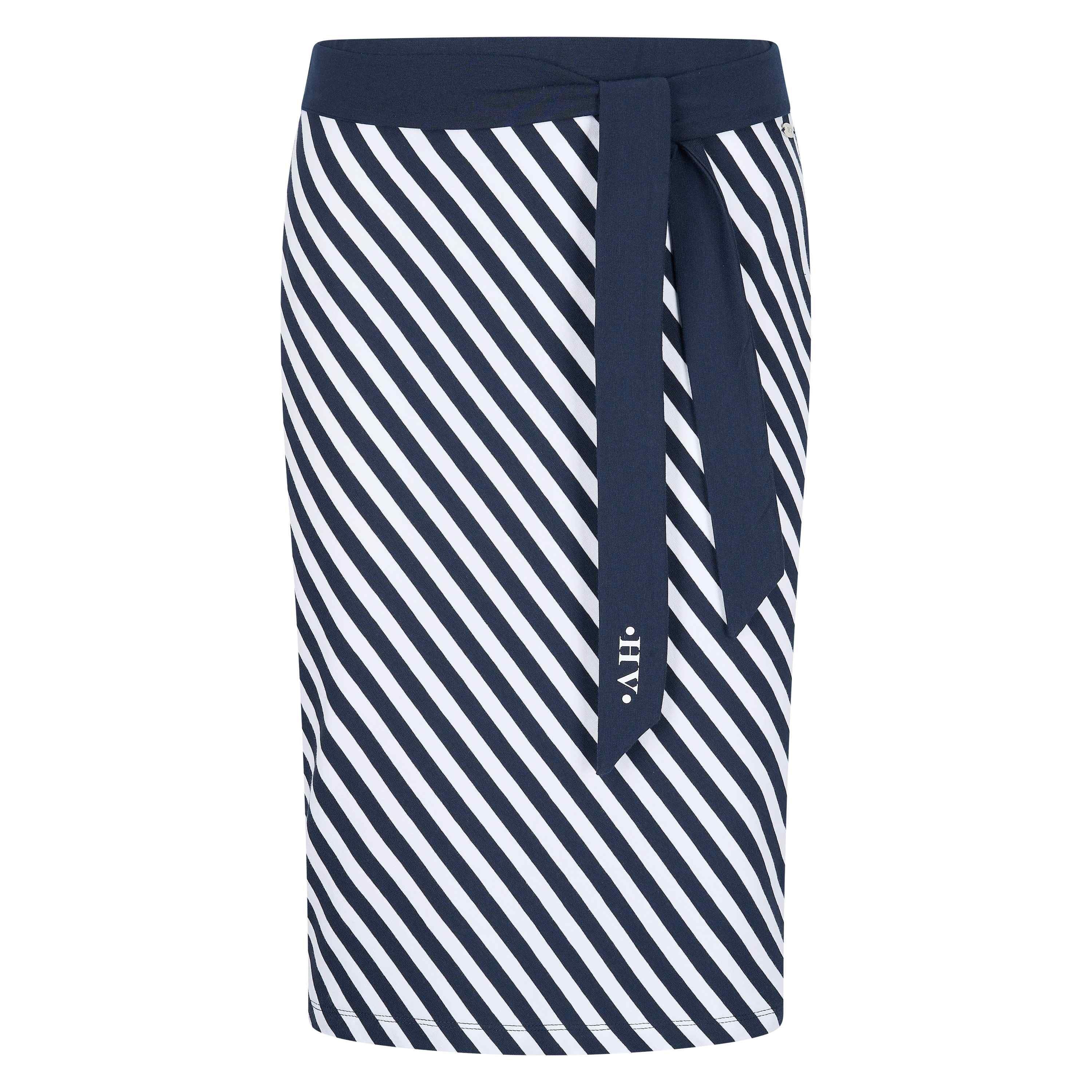 Rok in stretch katoenen jersey * Gestreepte versie is diagonaal gesneden * Effen jersey tailleband met elastiek aan de binnenkant * Effen jersey riem met logo-opdruk, vastgezet aan de zijnaden * Metalen logoplaat aan de voorkant