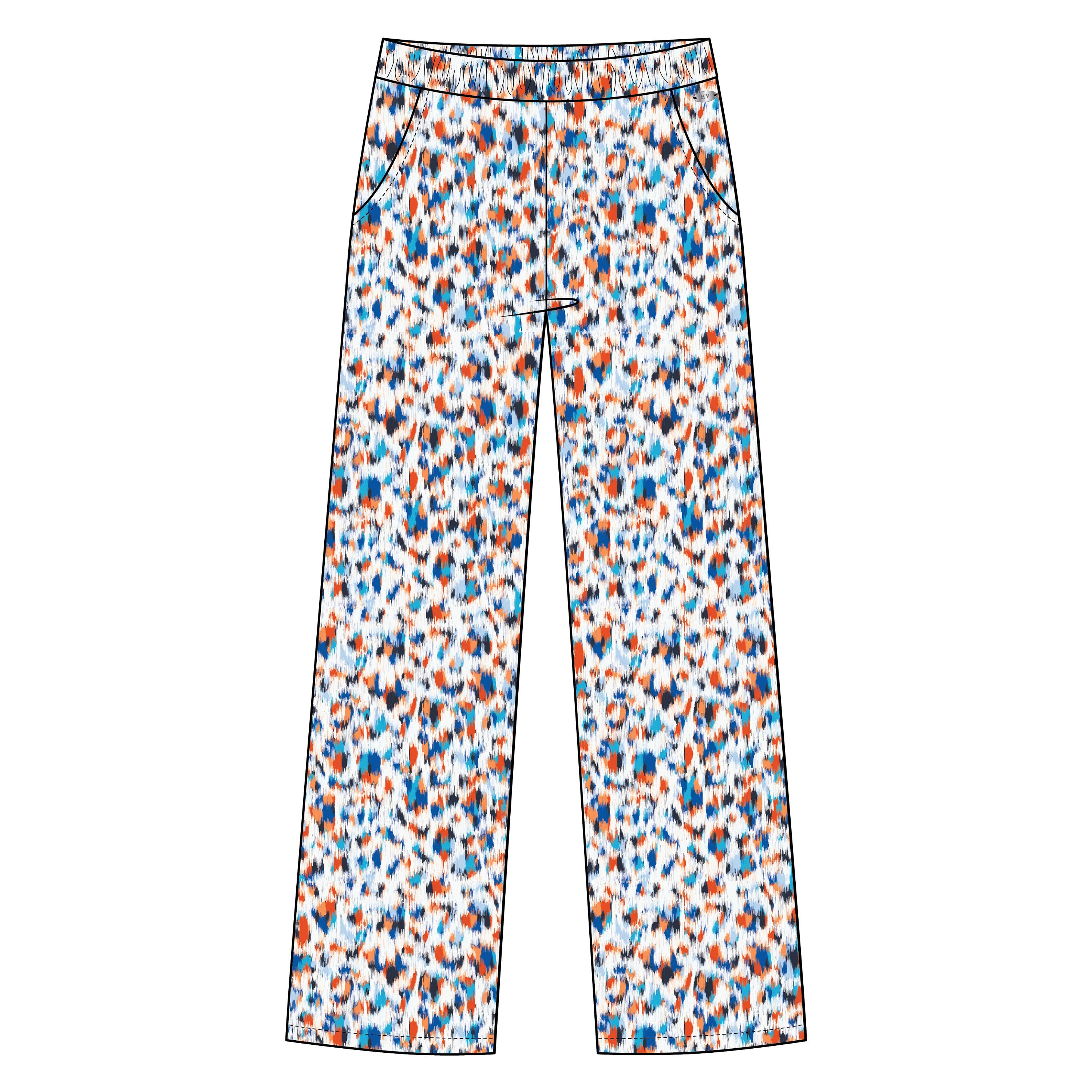 Pantalon en lin mélangé avec un imprimé coloré ou en bleu indigo