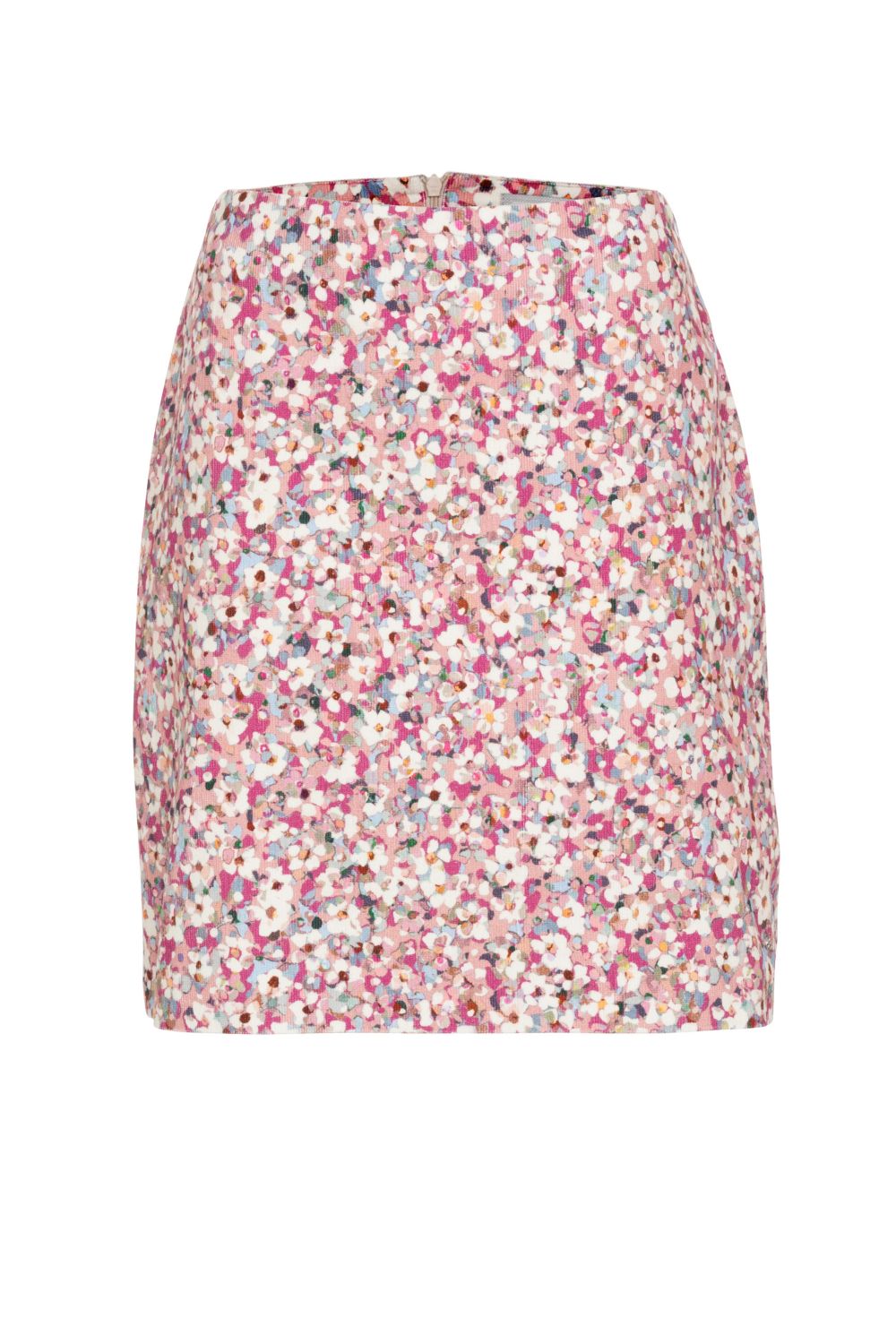 Jupe courte en velours côtelé fin, imprimé floral rose