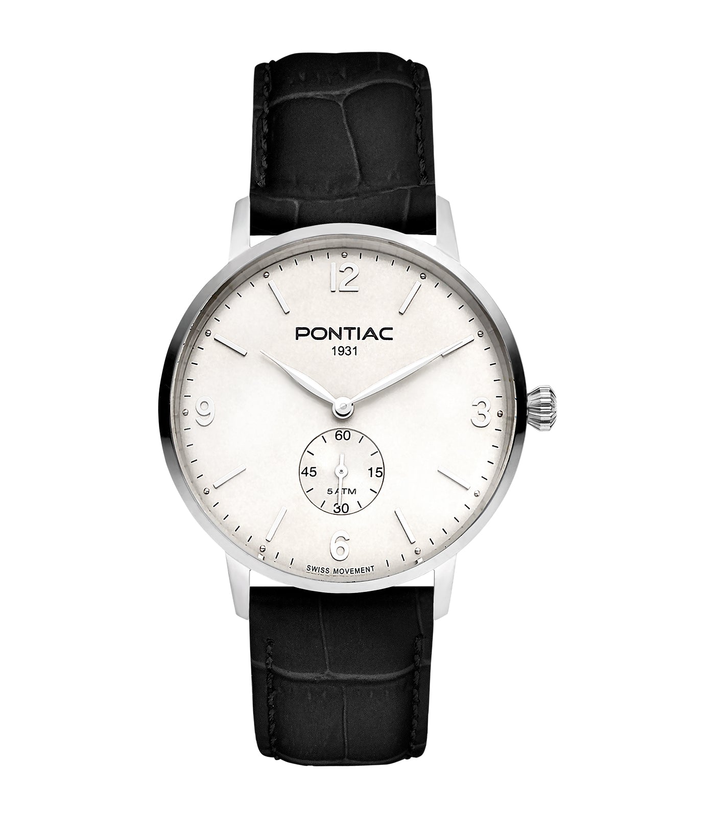 Pontiac - Arthur - Man - Bracelet Noir - Cadran Blanc - Boitier Argenté