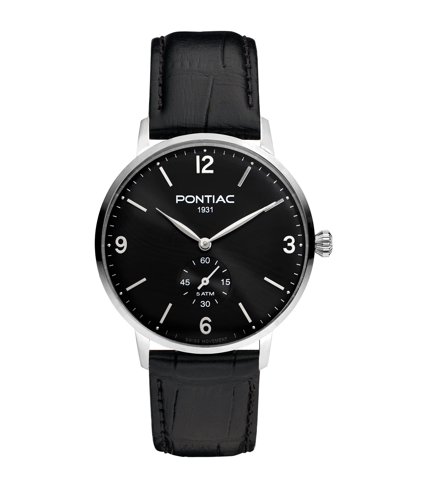 Pontiac - Arthur - Man - Bracelet Noir - Cadran Noir - Boitier Argenté