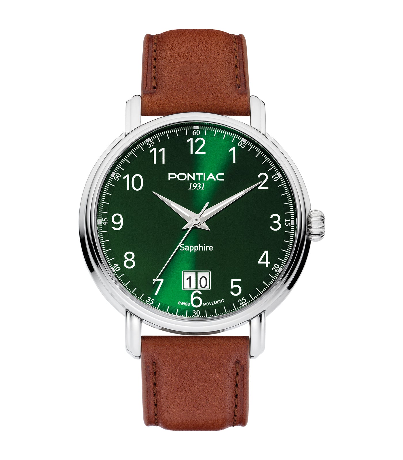 Pontiac - Eric - Man - Bracelet Camel - Cadran Vert - Boitier Argenté