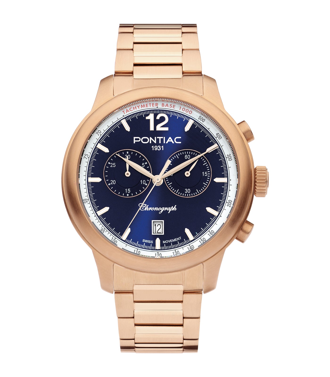 Pontiac - Henry - Man - Bracelet Or Rose - Cadran Bleu - Boitier Or Rose