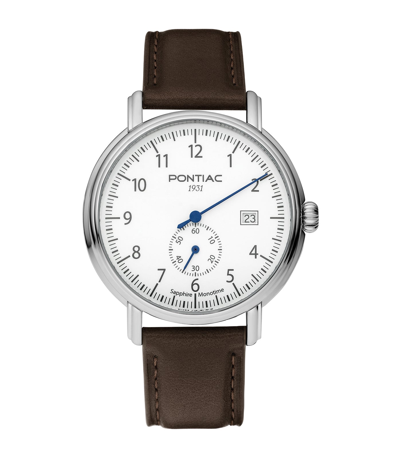 Pontiac - Monotime - Man - Bracelet Brun - Cadran Blanc - Boitier Argenté