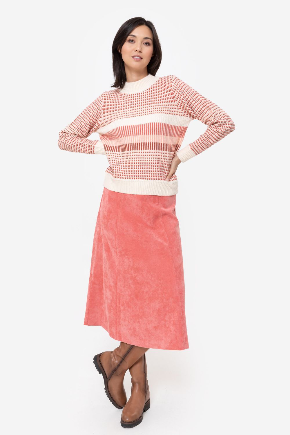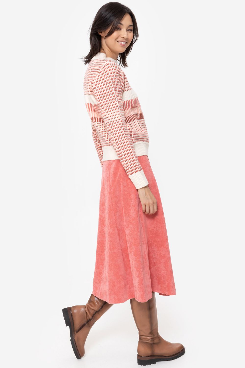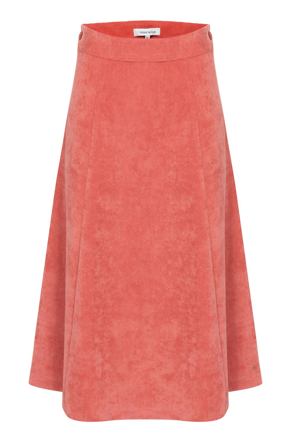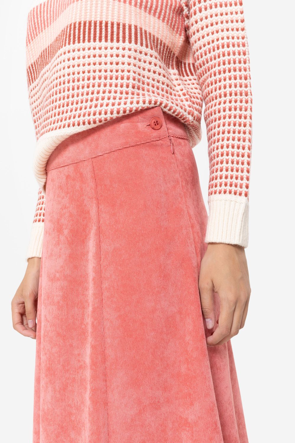 Jupe trapèze midi, en velours côtelé rose