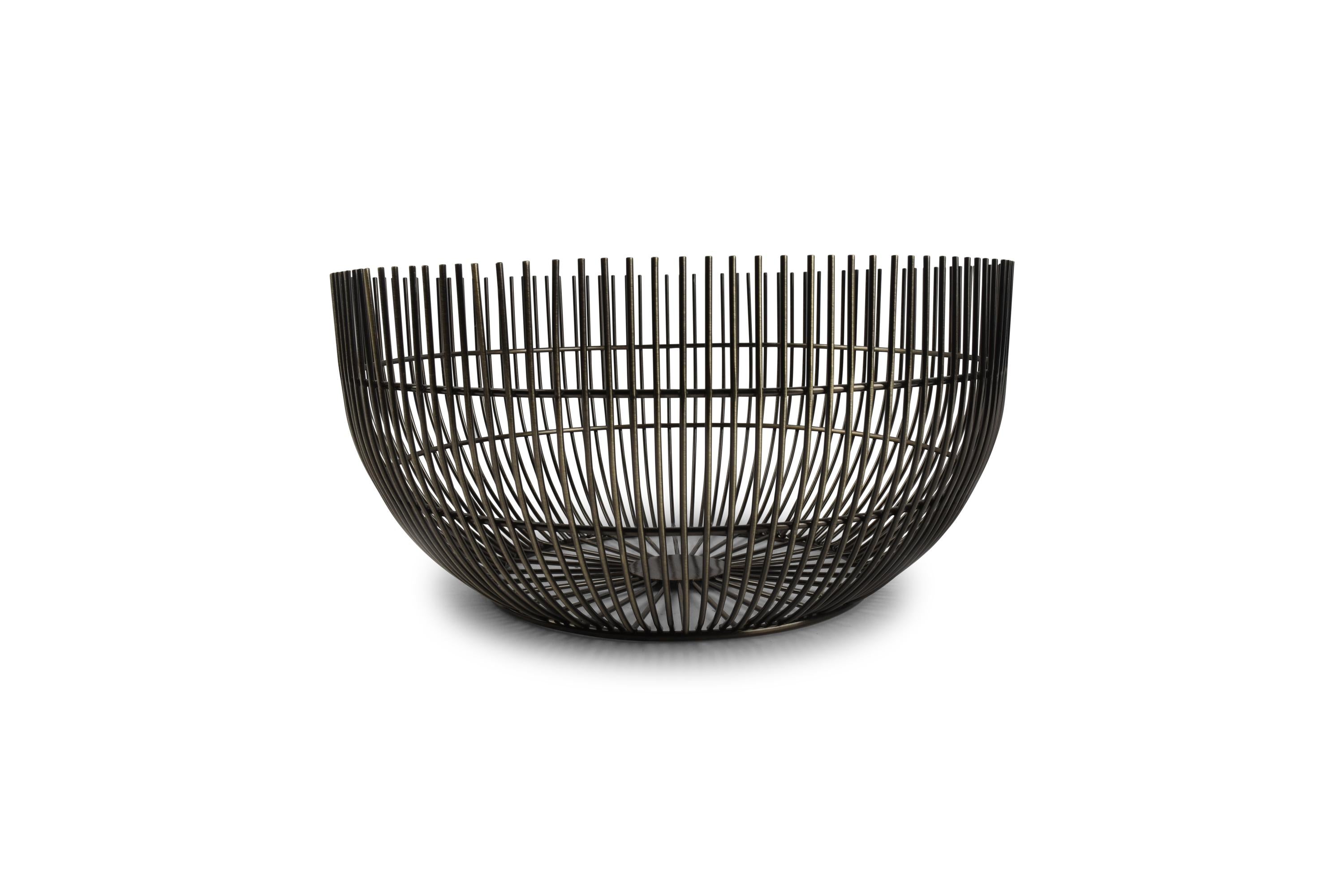 De multifunctionele Iris draadmanden combineren decoratieve elegantie met grafische lijnen en zijn beschikbaar in vier formaten. Zoals de naam subtiel suggereert, verwijst hun vorm naar de fijne, ronde structuur van het oog. De manden zijn ideaal om alles wat je maar wilt in op te bergen. Stijlvol én praktisch in elk interieur.