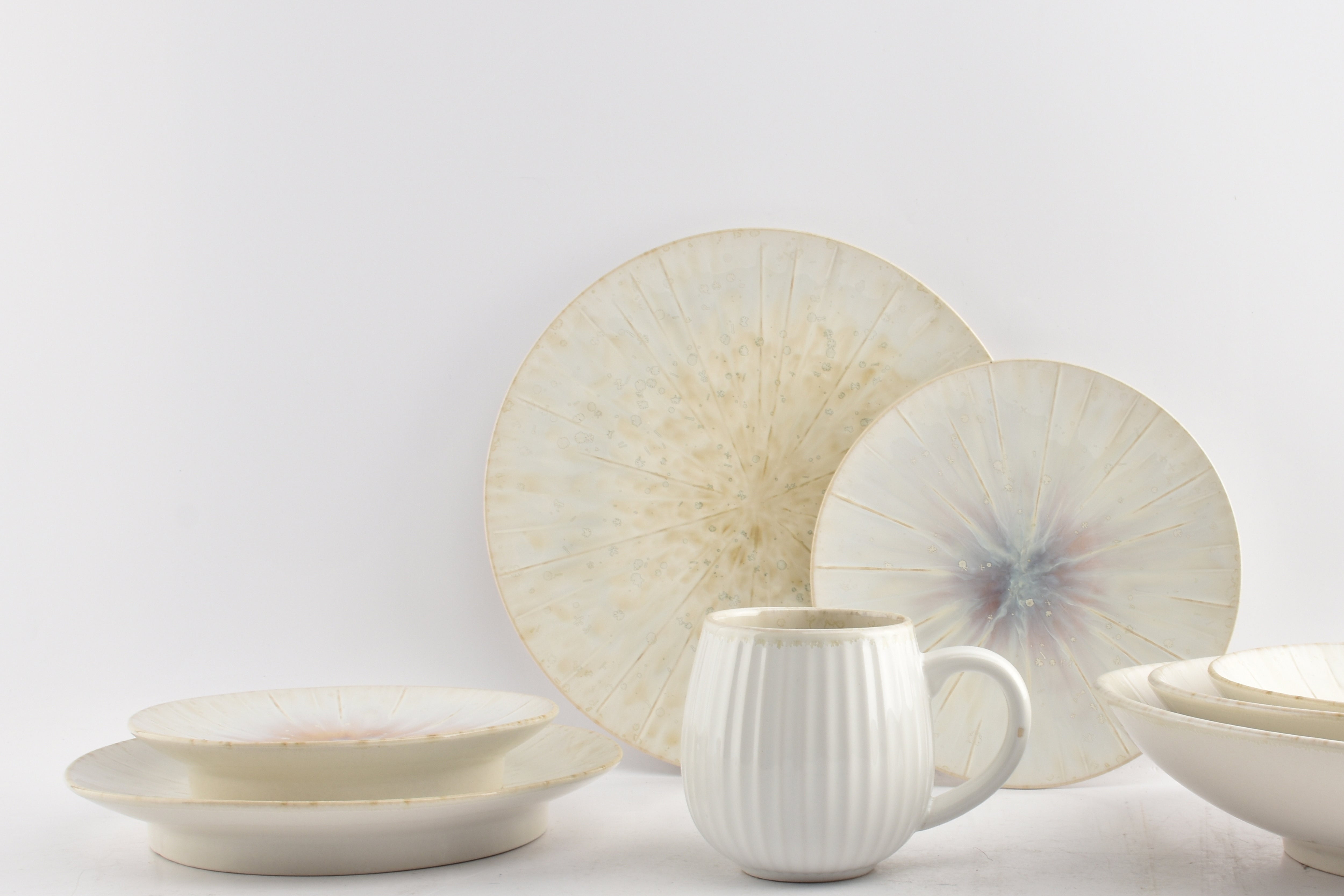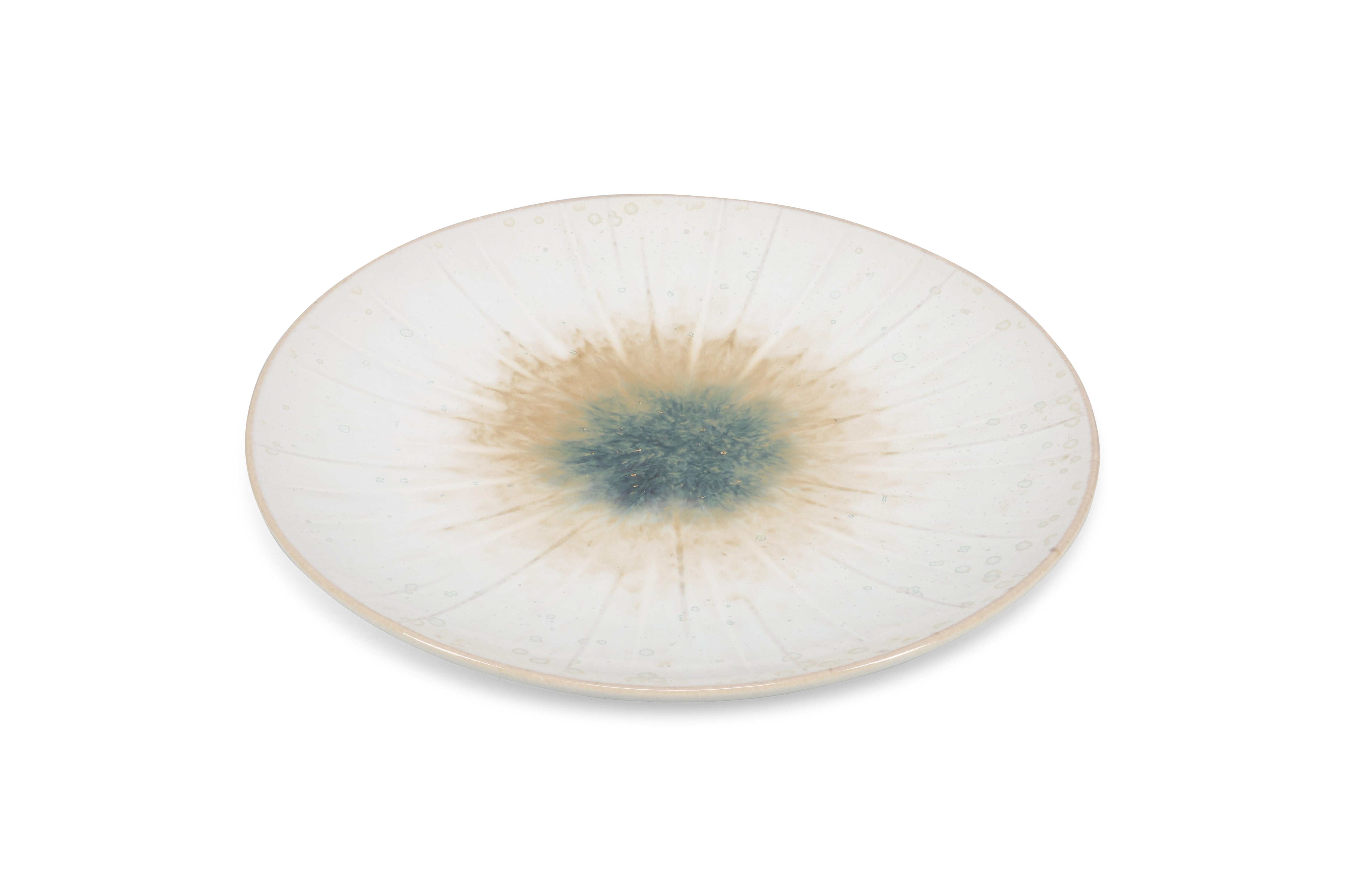 Verdwaal in de elegante verfijning van onze Eclipse collectie, een samenspel van verblindend witte parelkleuren en verfrissende accenten in muntgroen. Elk stuk in deze collectie omhult je in een aura van tijdloze allure, met zijn prachtige reactieve glazuur dat uitwaaiert tot een betoverende irisachtige pracht. Laat je onderdompelen in de intrigerende mix van kleuren en texturen, die een onweerstaanbare sfeer van verfijning en betovering in elke ruimte creëert.