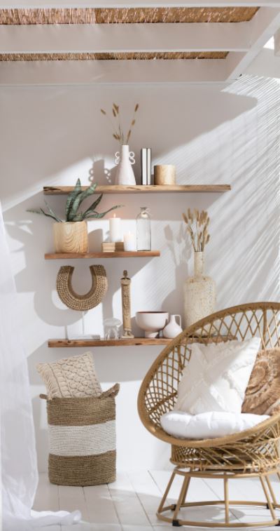 Sofa+kussen zayo draaiend metaal/rattan beige (88x92x100cm)