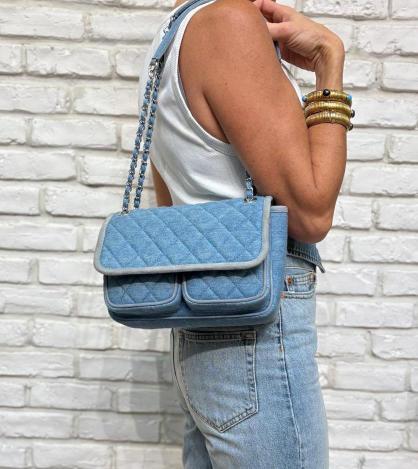 Sac en Denim, avec doublure intérieure en coton et anses en denim et cuir.