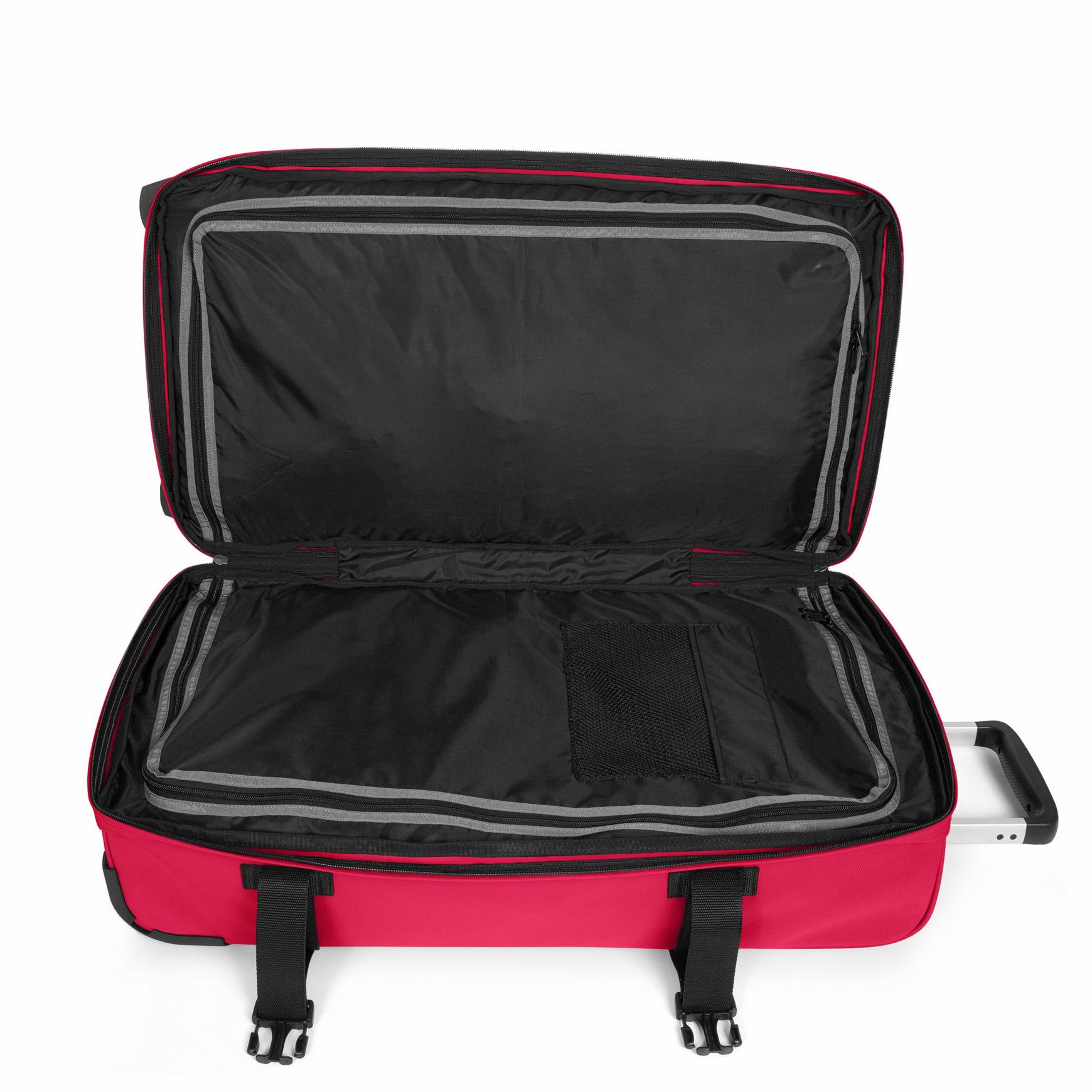 Notre bagage à roulettes grand format présente des caractéristiques supplémentaires en termes de durabilité et de sécurité. Les deux compartiments accueilleront en toute sécurité vos effets personnels grâce au système de verrouillage intégré. Ce bagage durable est doté de tubes en aluminium, de patins de protection et d'un losange en relief situé sur la poignée.